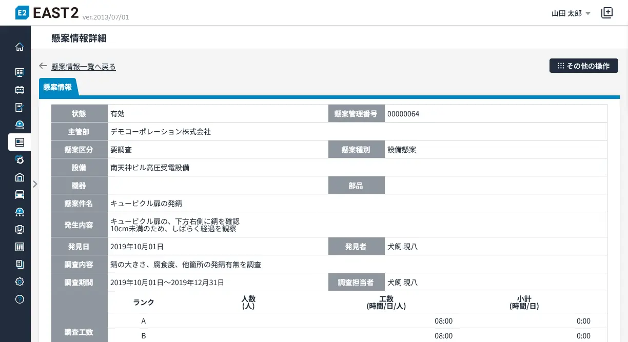| 設備台帳 | 設備登録、更新、交換、撤去 | |
