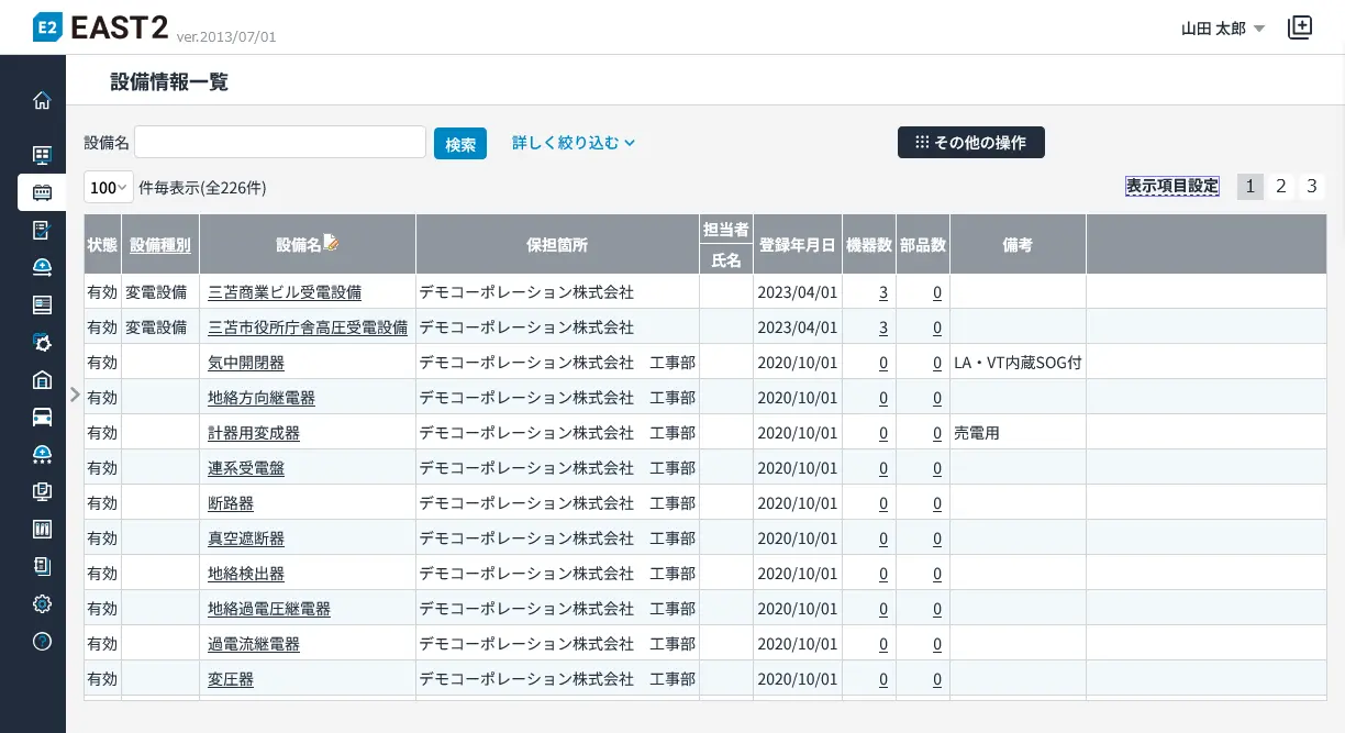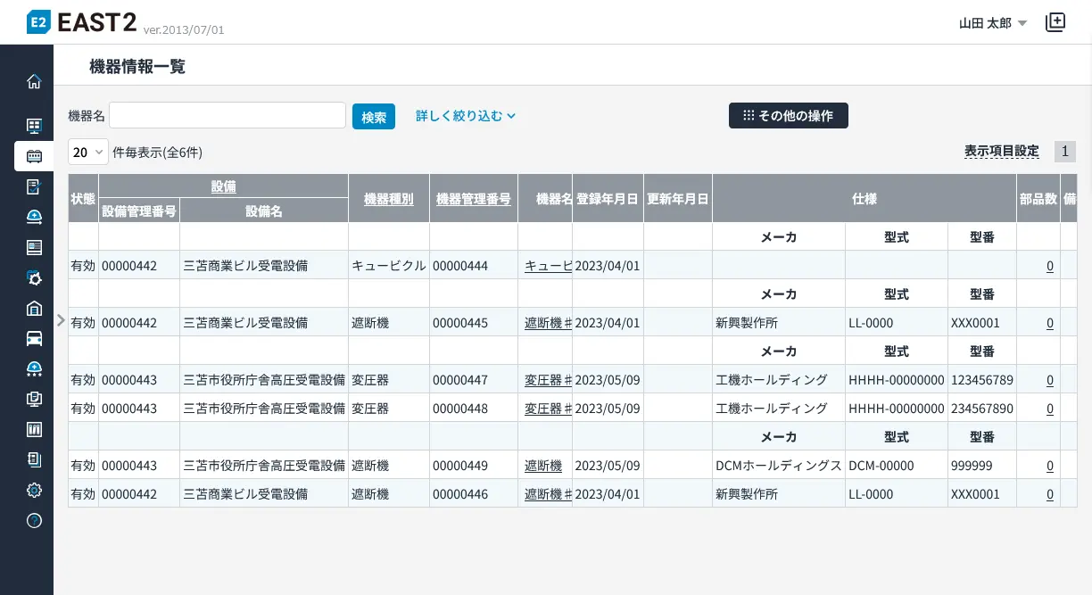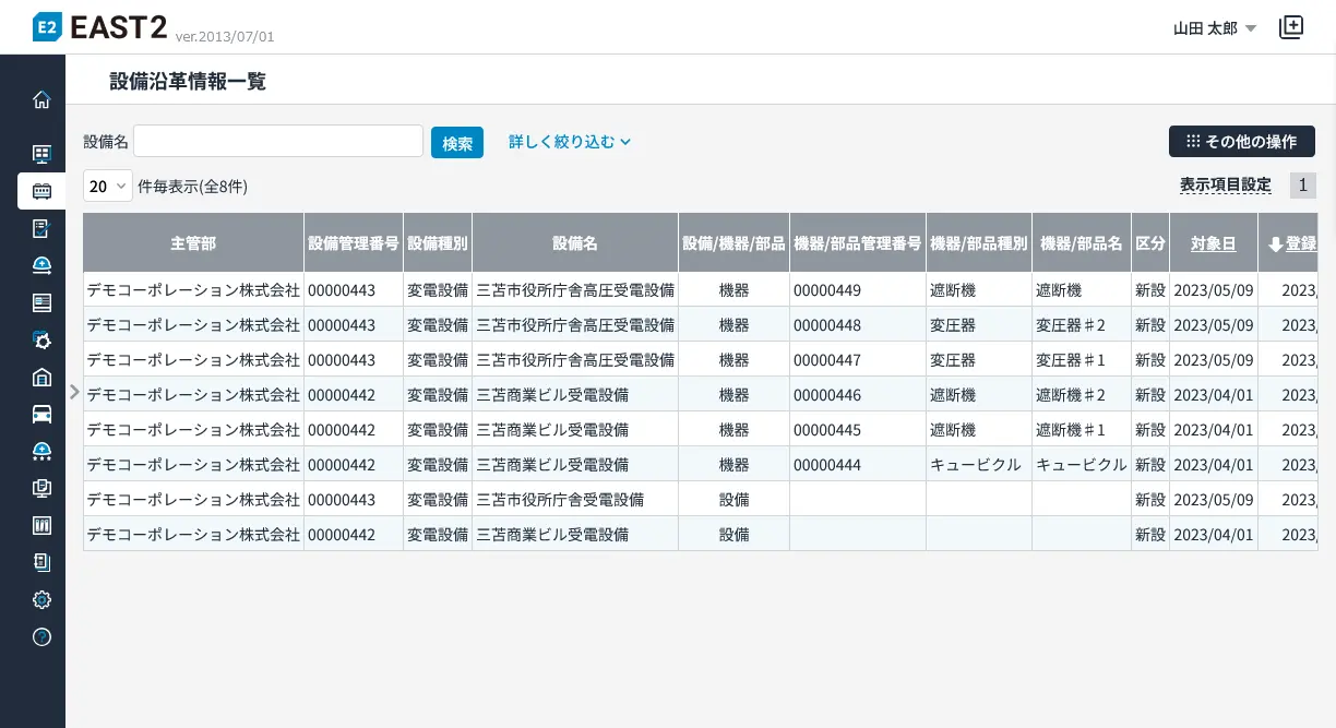| 設備台帳 | 設備台帳参照、設備台帳変更 | 近日公開 |