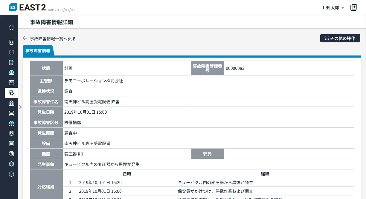 | 事故障害受付 | 事故障害受付登録、回答登録 | |