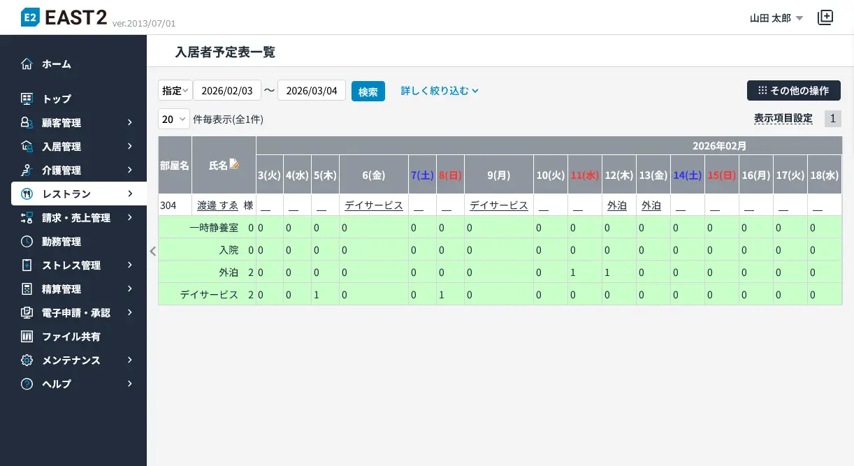 | 経過管理 | 入居者経過登録、申送、極秘事項 | |